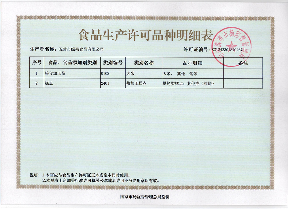 食品生產(chǎn)許可品種明細(xì)表